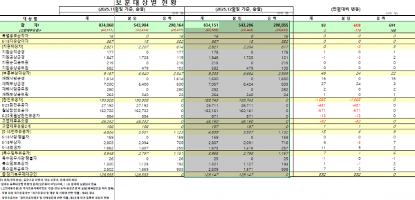 11번 글쓰기=>대한민국 국가보훈부 통계자료 *보훈대상자 현황* 83만4068명 [2025년12월31일 기준]