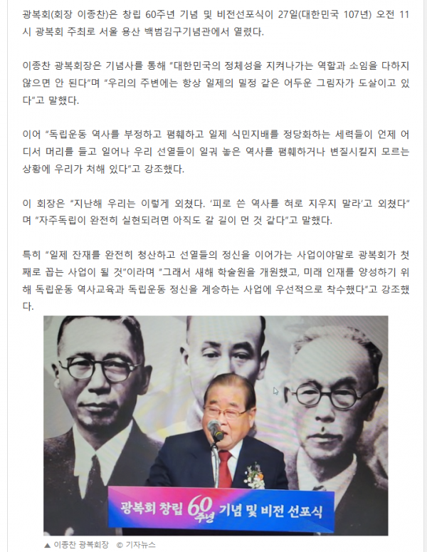21번 글쓰기=>*광복회 창립 제 60주년 기념식* [2025년 2월 27일]