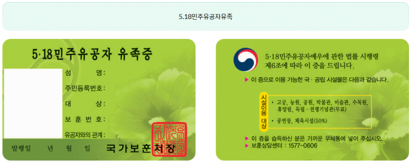 6. "5.18 민주유공자 유족증" 뒷면의 "시설이용 대상"